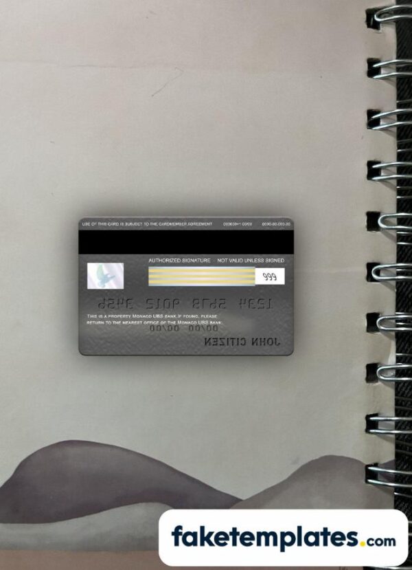 So buy and download Monaco UBS bank visa signature card template with the best quality and 100% similarity with the real original credit card example.