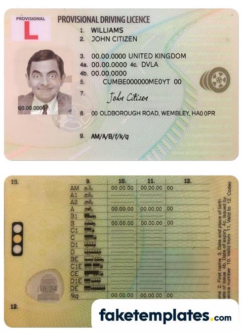 So buy and download fake United Kingdom driving license template with the best quality and 100% similarity with the real original driving license card